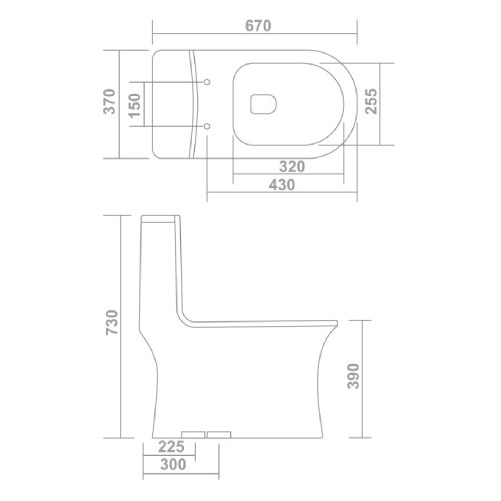 Dimension : 670 x 370 x 730mm S-Trap : 225mm x 300mm